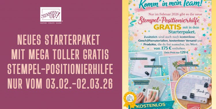 Hallöchen ihr Lieben!👋 Mega tolles Starterset ab dem 03. Februar 2026!🎊🎁✂ 🥳🍄🍀Werde Demonstartor auf Probe! Komm‘ in mein Team! 😍 Das Starterset für sich betrachtet ist schon ein Schnäppchen – doch zusammen mit der Stempel-Positionierhilfe, die es gratis dazu gibt, ist dieses Angebot unschlagbar! 🎊🎁✂ Wenn du in der Zeit vom 3. Februar bis zum Read More