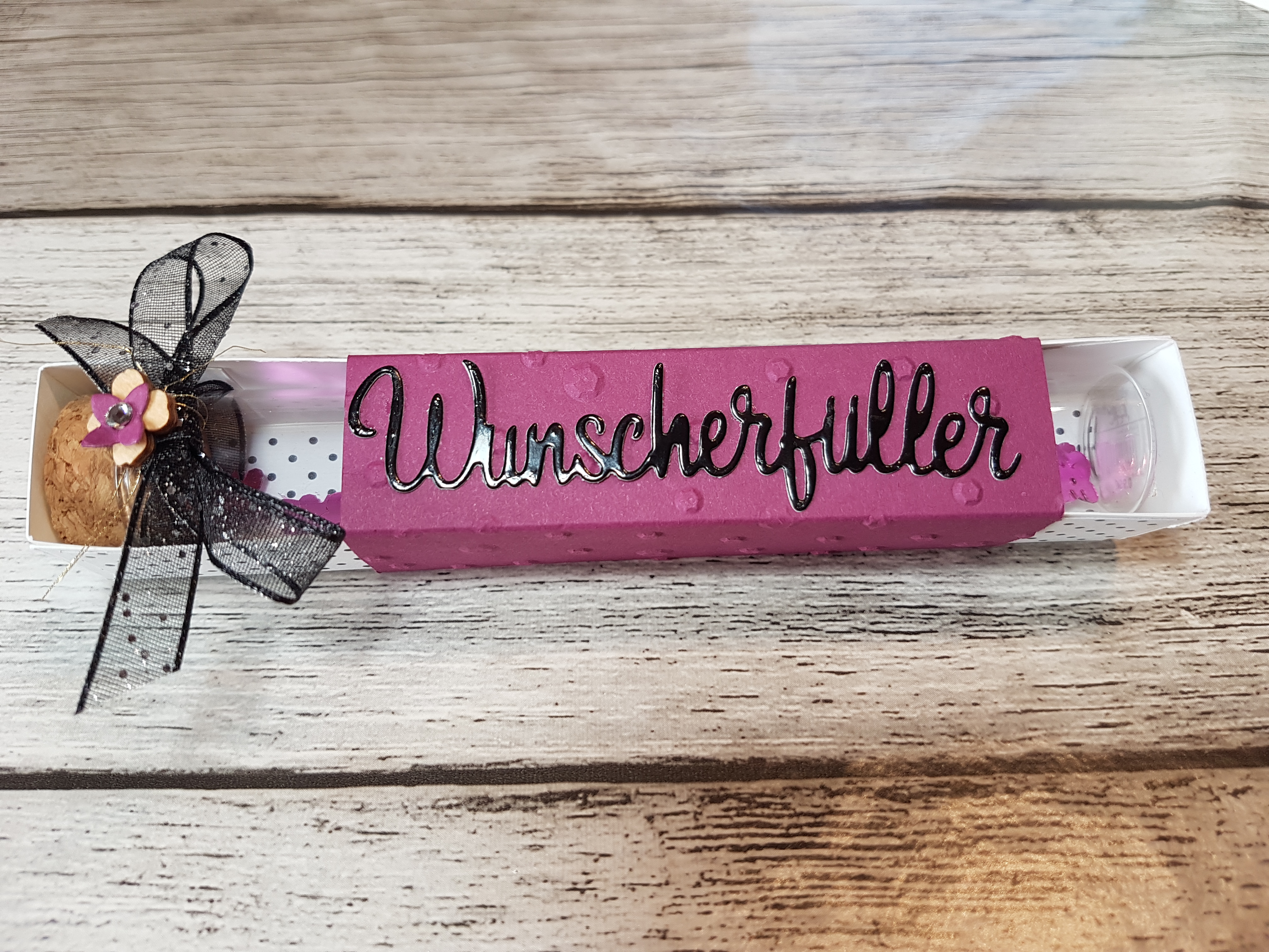 Ein goßes selbstschließendes Knallbonbon, einen Wunscherfüller für das Geldgeschenk sowie eine Glückwunsch-Karte. Ich fand das ganz witzig, mit dem Spruch auf der Karte:“Du hast es geschafft“. Ich hoffe mal, dass sie das auch so sieht.
