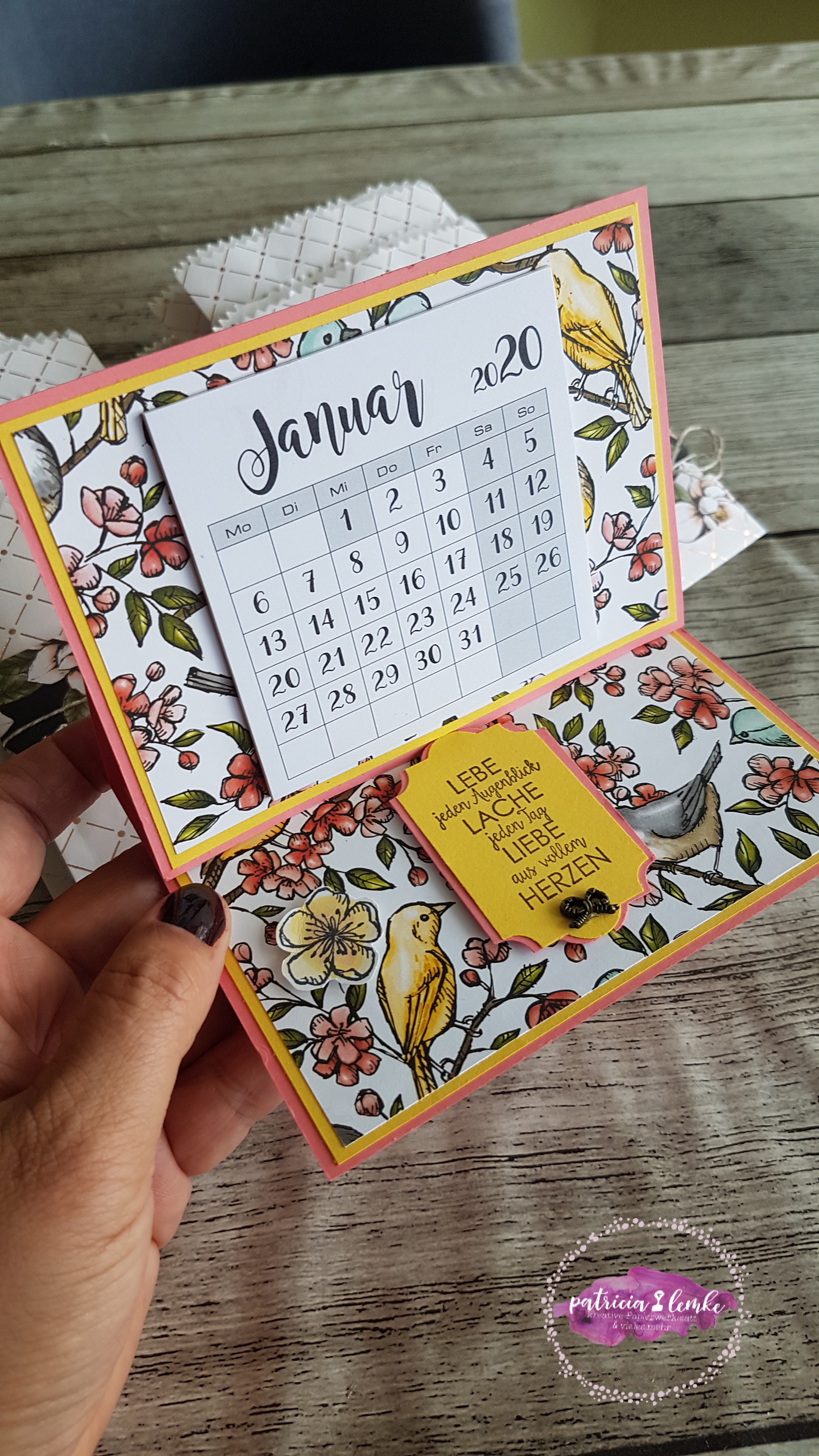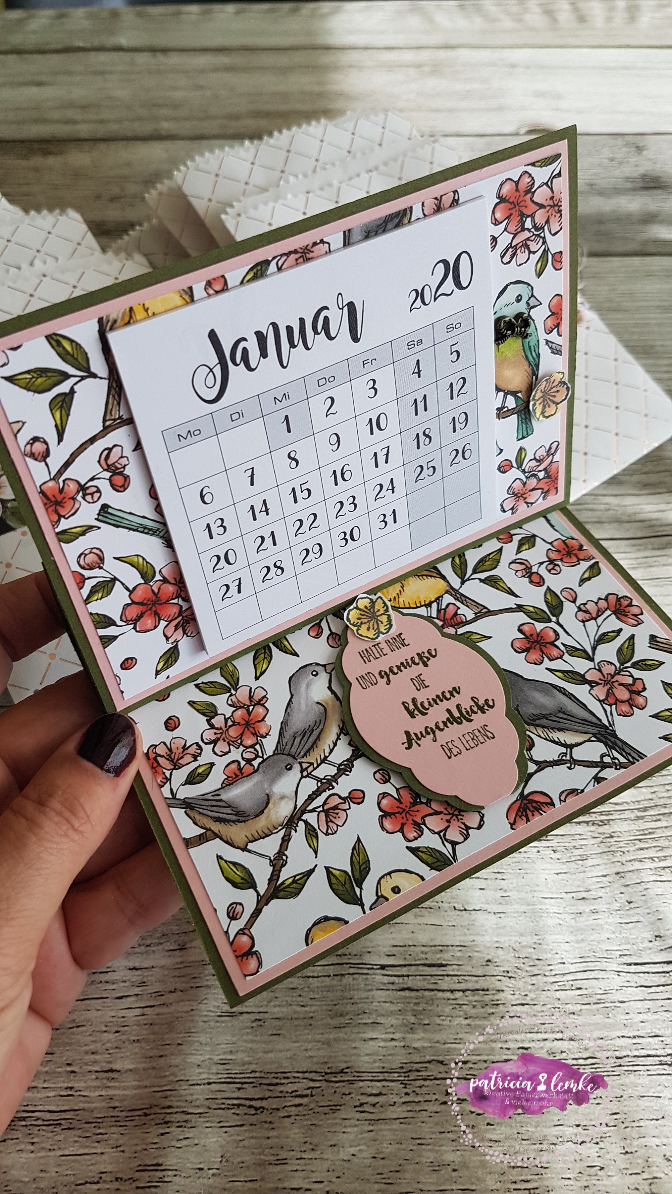 Zum 90. Geburtstag von meinem Papa hatte ich 19 Aufstelltischkalender als Gastgeschenk für jeden Gast gemacht. Meine Eltern sowie die Gäste haben sich sehr darüber gefreut. Zu meiner Freude sollten noch mehr von den schönen Aufstell-Kalendern den Besitzer wechseln…das war dann wohl ein Volltreffer in Sachen Eigenwerbung. Hier kommt Ihr zum Anleitungsvideo: BITTE HIER KLICKEN!