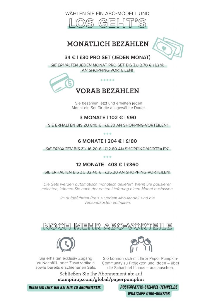 Bald es ist soweit! Europa bekommt das lang ersehnte Paper Pumpkin Abo! Ich freue mich wirklich sehr darüber, denn in den Paper Pumpkin Sets sind exklusive Stempelsets (auf englisch!) enthalten, die es sonst in keinen Katalog oder in den Onlineshop schaffen.