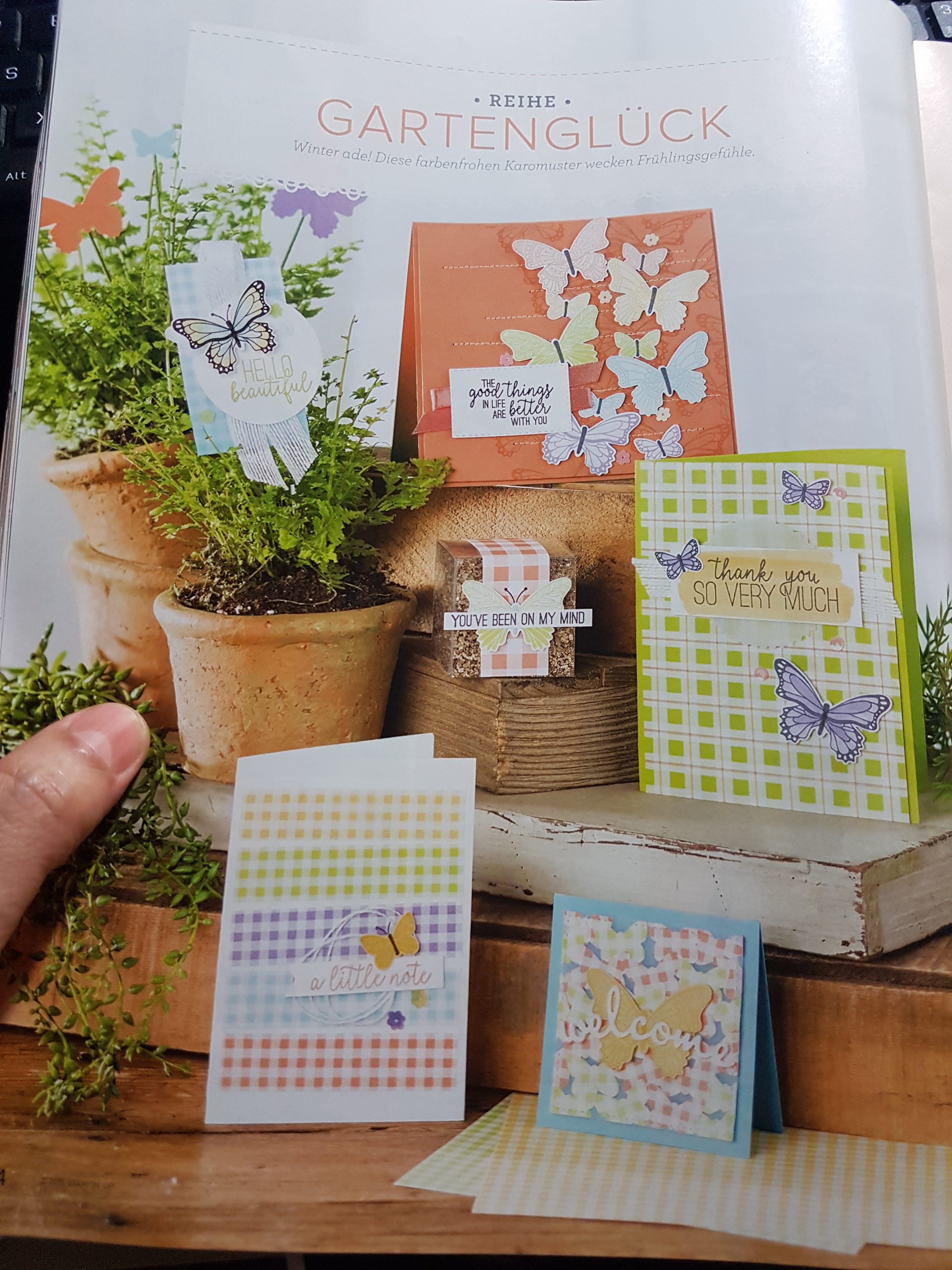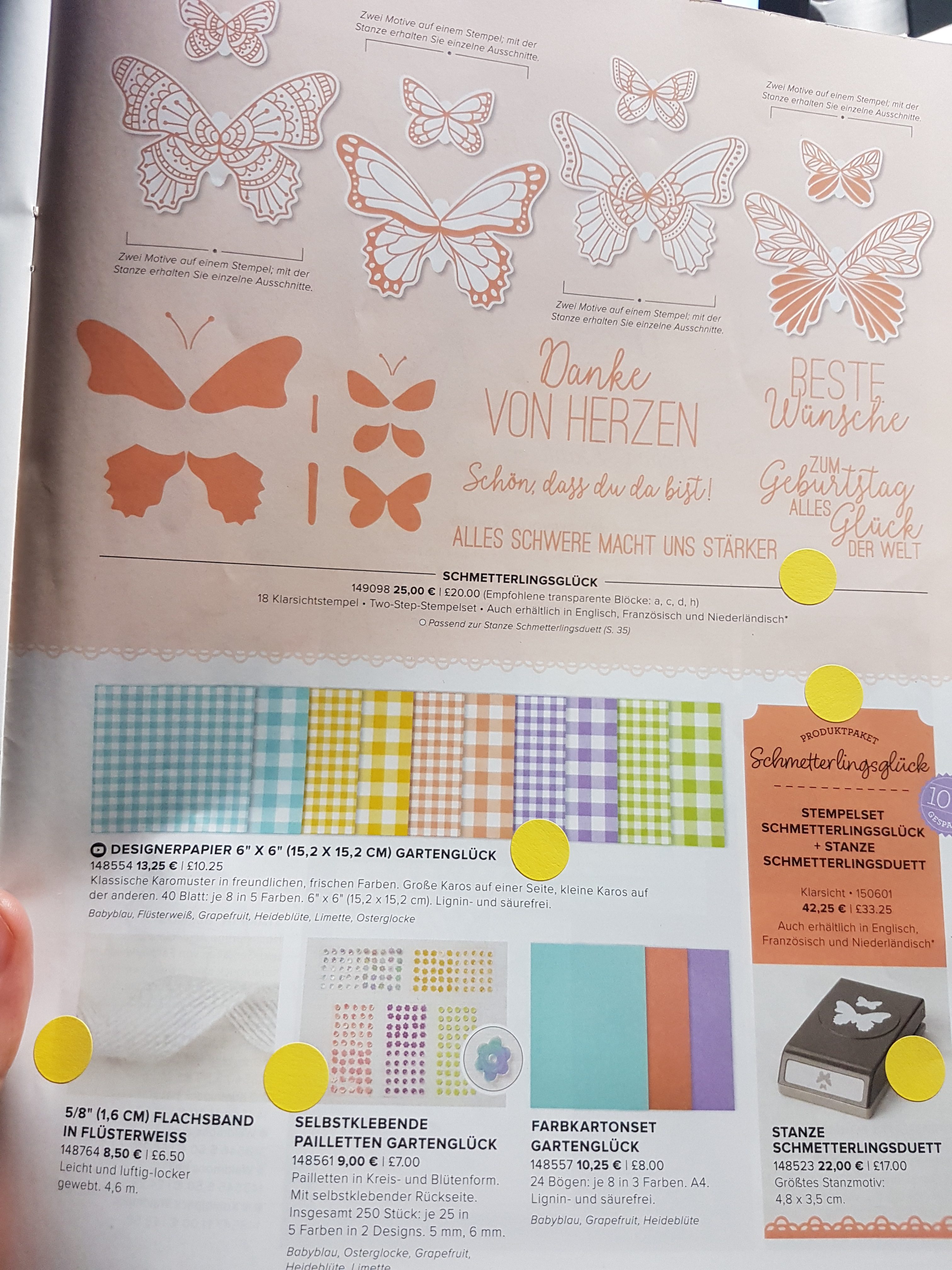 Meinen nächsten, geplanten Workshop muss ich leider verschieben, da es aktuell noch Lieferprobleme mit dem schönen Produktpaket Schmetterlingsglück ( 1 Elementstanze und 1 Klarsicht-Two-step Stempelset, Art. 150601, 42,24 €) gibt.