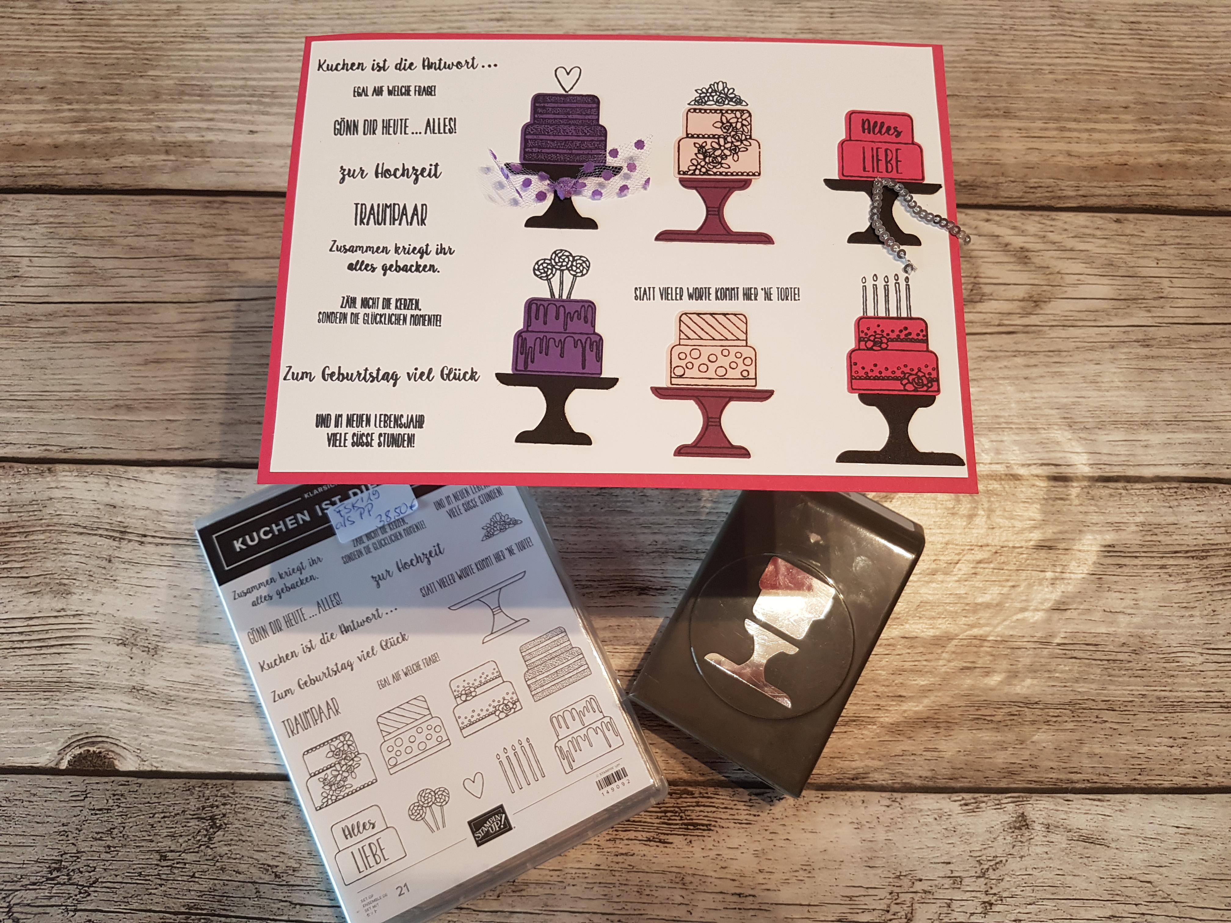und eine feine Übersicht von dem Produktpaket „Kuchen ist die Antwort“ mit dem wir gestalten werden, angefertigt: